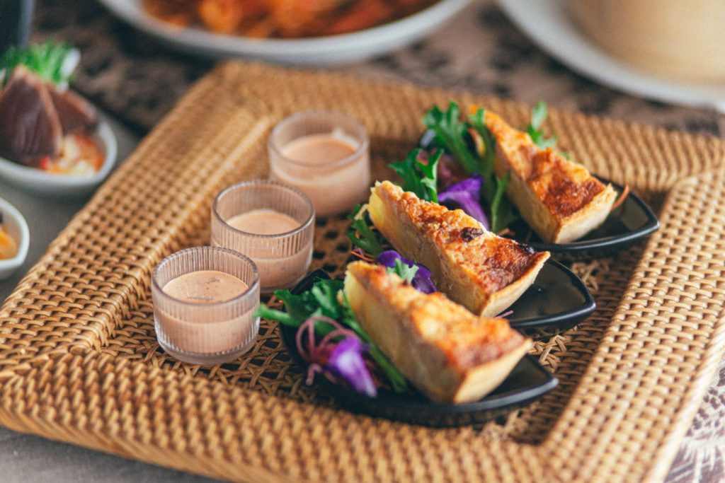 ズワイ蟹の繊細で濃厚な旨みを、あえてシンプルで芳ばしい長ネギが引き立てるズワイ蟹と長ネギのキッシュや、渡り蟹のパスタは旬の渡り蟹を使用!季節限定の味わいです。、口の中でふわっと広がる!カニの身たっぷり「贅沢蟹焼売」。