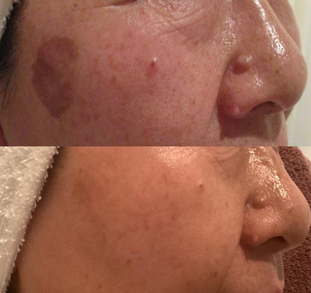 LFスキンブラッシャーを使った施術で、痛みや赤みを伴わずに、メラニンを少しずつ排出します。一週間前後でメラニンがアカとなり自然にはがれ落ち、シミが徐々に改善されて行きます。