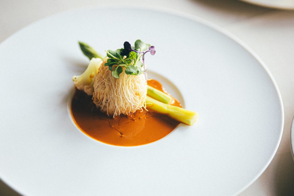 地元・森町が誇るブランド牛「森の姫牛」を使用。肉本来の甘みを引き立てるため、あえてコンソメ仕立てにし、仕上げには掛川茶とほうじ茶の香りを纏わせました。地元の茶文化と極上の肉質が融合した、当レストランならではの逸品です。