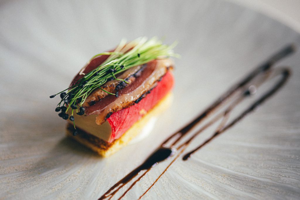 • フォアグラのコンフィと合鴨生ハムの炙り ブリオッシュのタルティーヌ